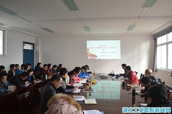 新闻网讯(通讯员 乔冠翔)11月30日下午,机电工程系在6417会议室召开学习贯彻十九大精神动员会。本次会议到由系党总支书记杜海军主持,机电工程系全体教师以及学生入党积极分子参加了此次会议。
