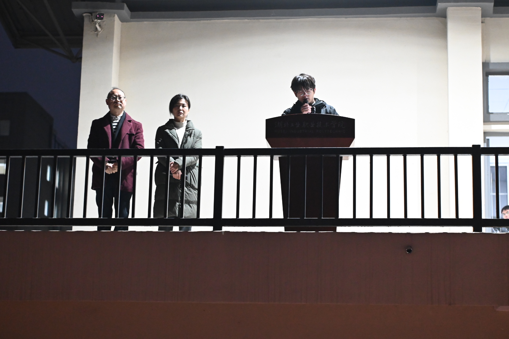 彭冲作为比赛获奖学生代表发言,他分享了参赛备赛的经历与感悟,讲述了团队在竞赛中攻坚克难、协作拼搏的过程。他发出倡议:勇于挑战自我、深耕专业技能,在实践中锤炼本领。